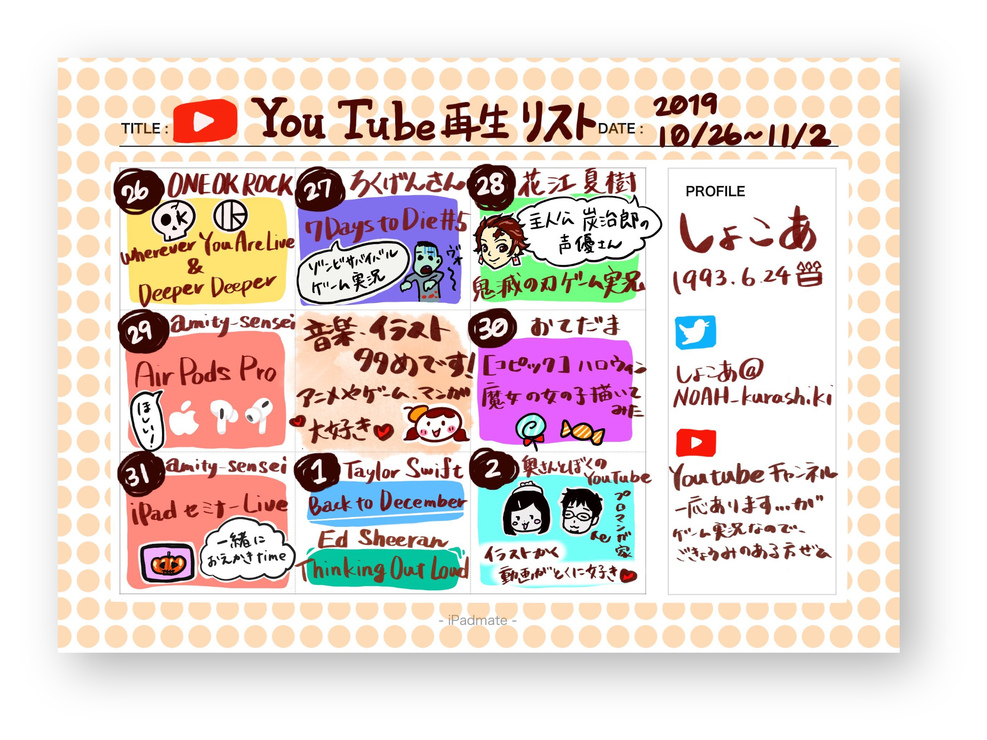 ★日記のテーマを各自 決めてください★普通の絵日記でもいいし、食日記、小さな幸せ日記、聞いた音楽、とかなんでもOK!